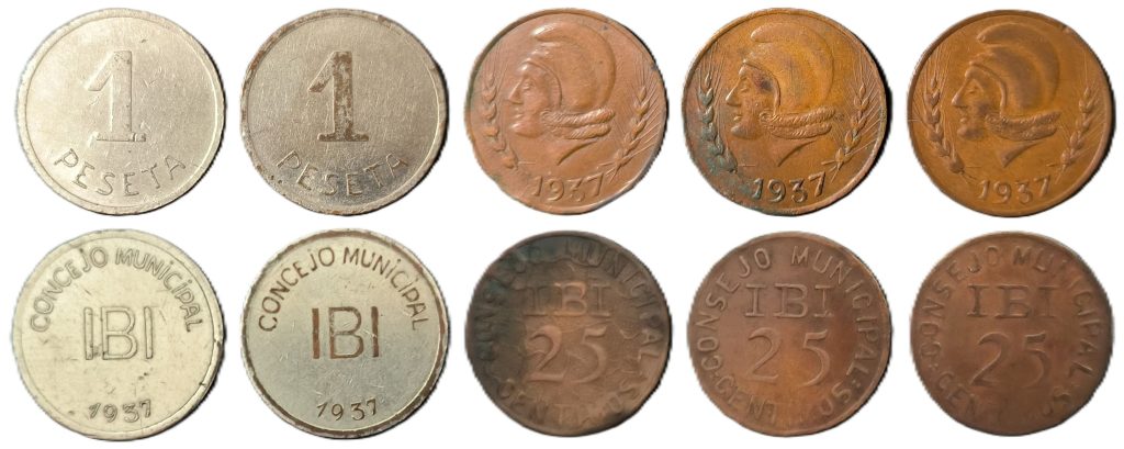 En 1937, la villa de Ibi pasa a formar parte de la numismática universal a través de las monedas acuñadas en la fábrica socializada de «Payá Hermanos» y su leyenda tan solo dirá «Consejo Municipal. IBI. 25 céntimos» o «1 Peseta» según el caso.