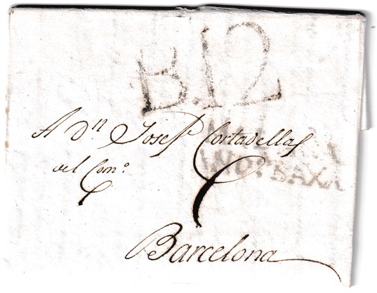 Carta histórica fechada el 4 de junio de 1806, enviada desde Málaga con destino a Barcelona, durante uno de los periodos más interesantes del reinado de Carlos IV. Esta correspondencia manuscrita se conserva en buen estado, con texto legible y papel de época bien preservado. Lo más destacado de la pieza es la presencia de la marca postal MALAGA ANDª BAXA en tinta negra, una cancelación poco frecuente que añade un valor filatélico especial a este documento. Se trata de una marca escasa, utilizada en el servicio de correos de Andalucía Baja, lo que convierte esta carta en un testimonio excepcional del sistema postal español anterior al uso del sello adhesivo.