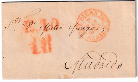 En su reverso, se conserva el matasellos de tránsito de Madrid, fechado el 10 de enero, revelando un tiempo de tránsito de apenas tres días, excelente para la época. La carta se encuentra en buen estado de conservación, con leve desgaste en los bordes propio de su manipulación original, lo que no resta valor histórico al conjunto. Se trata de un ejemplo interesante para cualquier colección de historia postal prefilatélica española, especialmente por su origen andaluz, la claridad de sus marcas postales y su contexto dentro de los cambios que inauguraría el sistema postal moderno.