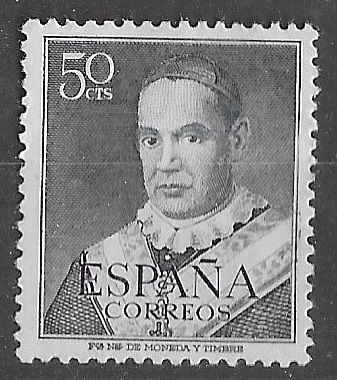 Sello conmemorativo emitido en 1951 por Correos de España, dedicado a San Antonio María Claret, figura clave del siglo XIX en la historia eclesiástica española y fundador de los Misioneros Claretianos. Corresponde al nº1102 del catálogo Edifil y se presenta sin fijasello, conservando su goma original en excelente estado, lo que incrementa notablemente su valor filatélico. Esta emisión forma parte de la serie dedicada a personajes ilustres de la Iglesia, y destaca por la sobriedad de su diseño y su perfecta impresión en tonos oscuros.